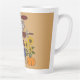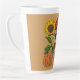 Cafe Latte Coffee Cup Mug imprimé avec l'illustration de la conception de Super Cute Scarecrow par TheFabricSeal à l'adresse Zazzle.com. La saison d'automne, Thanksgiving et Halloween sont tous des moments très agréables de l'année. Ce dessin fantasque adorable avec un épouvantail super mignon avec un grain idiot, citrouilles et tournesols était beaucoup de plaisir à créer. L'épouvantail a un casquette de baseball rouge curieux et orangé, un pull brun, un pantalon bleu, des cheveux de paille, des mains, des pieds et du corps. De magnifiques tournesols jaunes avec leurs somptueuses graines de tournesol poussant sur de grandes fleurs plantes vignes vertes et feuilles plus plusieurs délicieux citrouilles oranges complètent cette scène agricole ludique et fantasque.