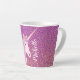 Unicorn Rainbow Pink Parties scintillant Imaginaire Magical Latte MugConçu avec un arrière - plan flamboyant de parties scintillant rose vif autour de la tasse. Le devant est recouvert d'une licorne blanche avec de jolis cheveux arc-en-ciel et des fleurs sur la tête. Customisé avec le nom dans le script de calligraphie blanc en lettrant verticalement sur le côté droit de la licorne. Fait une adorable idée cadeau pour la fête d'anniversaire d'une fille à la licorne.