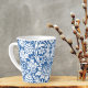 Une tasse à café latte avec un motif floral William Morris (18134-1896) intitulé Sunflower (1879) dans une palette classique bleu et blanc. De grands tournesols avec des vignes gracieuses et des feuilles. Il était un artiste britannique de l'époque des arts et de l'artisanat, qui a conçu des papiers peints et des textiles.