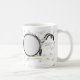 Tasse mit Blattmusik und marschierender großer Trommel. Großes Geschenk für Musiker und Musikfreunde.