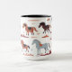 Tasse mit abstrakter Kunst und Pferden.
