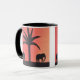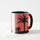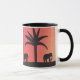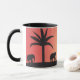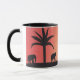 Diese klassische Tasse wurde mit meiner Darstellung von Elefanten entworfen, die von einem orangefarbenen Sonnenuntergangshimmel versilbert wurden.