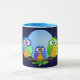 Tasse mit einer vektorillustration, drei zeigend niedlich, bunte Eulen. Dieses Produkt kann besonders angefertigt werden, indem man Text addiert.