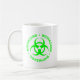 Biogefährdung - naturwissenschaftliche oder Science-Fiction-Tasse mit fett grüner Schrift und Biogefährdung-Symbol.