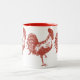 Eine Tasse mit einem roten Hahn. Die Tasse ist rotes Innere.