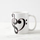 Les clefs musicales attaquent des caractéristiques qu'un coeur a formées par une clef triple et une clef basse dans le noir a décrit en rouge.