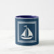 Design à thème nautique avec décoration de voilier en carrés rayés sur arrière - plan bleu