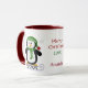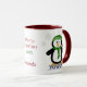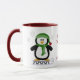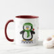 Voici une mignonne tasse Holiday qui comporte un manchot de traîneau et votre propre texte personnalisé. Le pingouin est habillé d'un foulard et d'un casquette vert Vacances. Il est en train de faire du cabotage sur son traîneau, et quelques flocons de neige se déversent autour de lui. L'image est répétée deux fois, avec trois champs de texte pour votre texte personnalisé entre les deux. Parfait pour les petits et les grands pendant la saison de Noël !
