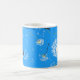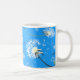 Tasse Pusteblume, weiß und blauer Hintergrund. Design von Birgit Schlegel.