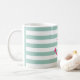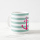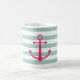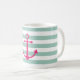 Une tasse rayée avec une ancre rose.