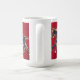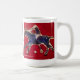 Cheval et joueur peints en céramique bleus de polo sur l'arrière - plan rouge. Tasse blanche. Art fait sur commande par StudioNancyAlcott.