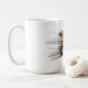 Une tasse de café blanc simple avec la belle gorge saumonée Grant de mouche de pêche a imprimé dans le détail renversant