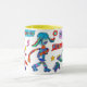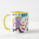 Cool! Woohoo! Phantastisch! Diese Roboterfreunde haben tagsüber eine explosive Skaten. Diese Tasse wurde von Nick Akeson entworfen und verfügt über drei bunte Roboter auf einer gelben Tasse!