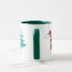 Cette tasse de vacances unique est lumineuse et colorée, avec la typographie qui dit "Mange, BOIS, ET BE MERRY". Les couleurs utilisées sont le vert citron, le rouge et le bleu turquoise. Au-dessus du texte de chaque côté se trouve un oiseau turquoise. D'un côté, un sapin de Noël aux ampoules bleu pastel et rose, de l'autre, un chapeau de Père Noël rayé. Festif ! *L'image clipart utilisée dans cette conception est protégée par le droit d'auteur de Encore Software, Inc., qui permet son utilisation à ses concédants de licence. Tous droits réservés.