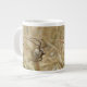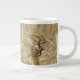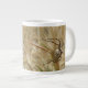 Diese phantastische Tasse zeigt ein detailliertes Foto einer Gartenspinne, die ihren Eizellensack mit einer Klinge aus gesäuertem Gras trägt. Das schöne Detail dieses Fotos bietet einen seltenen Blick auf die kümmernd Seite dieses oft gefürchteten Tieres.