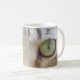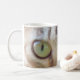 Katzenaugen sind das Hauptmerkmal dieses Bildes. Grünes Set in brauner "Maske" über den Nasenbereich. Schwarz-Weiß-Zeichen oben.
