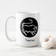 Taurus - Zeichen des Zodiaks - 21. April bis 21. Mai. Grafische Darstellung eines Stiers, weiß, in einem schwarzen Kreis.
