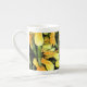 Eine schöne Knochen-China-Tasse mit einem Entwurf basiert auf den Zucchini-Blumen am Rialto Markt in Venedig, Italien