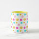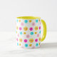 Tasse blanche avec des visages heureux multicolores mignons. Un excellent cadeau pour tout le monde !!!