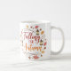 Bringen Sie warme Gefühle in Ihre Kaffeepause mit dieser Herbstwoche Tasse. Rustikale handgeschriebene Kalligraphie in Orange und Braun, mit Aquarellfarben-Blätter, Pinecones, gemütlichen Pullover und Kürbiswürfelbechern verziert. Perfektes Geschenk für Kaffee- und Herbstliebhaber.