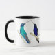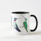 Diese hübsche Tasse für Vogelliebhaber umfasst mehrere handbemalte Kolibri-Arten, wie einen Broad-Billed Hummingbird, eine Ruby-throated, ein Violetear, einen Coronet Hummingbird und einen Langschnabel-Starthroat Hummingbird. Alle Vogelbilder stammen aus Aquarellbildern von Christiane Dobbins.