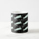 Weiße, glückliche Wale auf schwarzem Hintergrund, Zeit für eine Tasse!