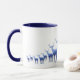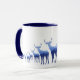 Diese Tasse wird außen in Weiß gezeigt, und hübsch blaues Hirsch/Elch wird auf der Unterseite der Tasse von rechts bis links in der Größe aufgedruckt, als ob sie in der Ferne weg laufen. Das Innere und der Griff sind marineblau. Passen Sie diese Tasse an oder kaufen Sie sie wie geplant. Archivbild mit freundlicher Genehmigung von www.freepik.com