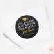 Feiern Sie den Absolventen mit einem lustigen Graduiertenthema in modernem Schwarz und Gold. Ein lustiger Aufkleber für den Absolventen. Sie können dies für Gastgeschenke oder für Umschlagaufkleber verwenden. Dieses kann für jeden Absolventen - Gymnasium, Uni, Graduiertenschule, Meditationsschule oder sogar Fachschule - genutzt werden.