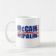 Appréciez une tasse de café chaud dans cette tasse de McCain Palin 2008. Cette tasse rouge, blanche et bleue patriotique comporte un drapeau américain et indique chacun que vous soutenez des républicains John McCain et Sarah Palin.