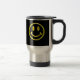 faites face aux tasses de voyage avec le visage heureux jaune sur l'arrière - plan noir. La grande conception pour des thèmes s'est rapportée au bonheur, à la joie, à la célébration, ou à l'inspiration. Employez ces derniers en tant que tasses de café de voyage, comme grand cadeau de jour de cadeau ou de mère de fête des pères.