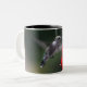 Le colibri s'arrêtant pour de l'alimentation à elle est fleur préférée. Appréciez la scène tandis que vous appréciez votre boisson si choix.
