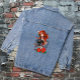 Une femme aux cheveux rouges portant un débardeur gris et un jean bleu denim. Elle a deux manches à bras pleins de tatouages. Tout dessiné dans une bande dessinée nouveau style scolaire.