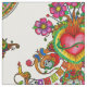 Buntes Gewebemuster mit Baum des Lebens am Tag des toten Themas. Lustige Schädel, abgefeuertes Herz, Blumen, Catrina und Volkselemente.