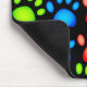 Einfache grafische Illustration eines Tiertatzendruck-Hintergrundentwurfs in Rotem, in Gelbem, in Grünem und Blau. Bild verfügbar auf verschiedenen Geschenken und Produkten.