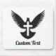 Taube Silhouette mit offenen Flügeln und einem Kreuz. Eigener Text.