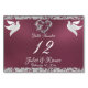 Dieses romantische Design besticht durch einen eleganten Lavendelhintergrund mit Glitzer-Rändern, Herz & Tauben mit einem Platz für die Tischnummer, Pärchennamen und Veranstaltungsdatum. Erhältlich in mehreren Farben für Ihr Hochzeitsthema. (Glitzer wird im Kunstwerk simuliert). Konzipiert, um mit der "Two Shall Become One - Doves, Heart & Glitzer" Wedding Collection zu koordinieren. Klicken Sie zum Ändern der Details auf "Personalisieren". Um den Text zu verschieben oder die Textgröße, den Schriftart oder die Farbe zu ändern, klicken Sie auf "Klicken Sie, um den Text weiter anzupassen".