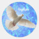 Dieser Taufsticker wird mit einem Foto der wunderschönen Taube gezeigt. Passen Sie dieses Objekt an oder kaufen Sie, wie es ist. Bild