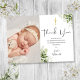Eine elegante Taufe oder Taufe Foto Dankeschön Karte. Personalisieren Sie mit Ihrem Foto und der Taufe, taufen Sie Danksagungen in schicker Schrift auf diesem modernen grünen Blumendesign. Entwickelt von Thisisnotme©