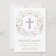 Diese elegante und hübsche Taufe, die Taufe, lädt zu einem illustrierten Blumenkranz ein, bei dem das Wort "Taufe" um ein Kreuz herum steht. Die Textfarbe, der Schriftart und die Nachricht können nach Ihren Wünschen geändert werden. Auf der Rückseite des Einladens befindet sich ein lila Hintergrund (der in eine beliebige Farbe getauscht werden kann) mit einem weißen Quartrefolienmuster.