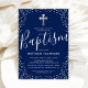 Taufe Navy Blue Silver Glitzer Christening Einladung