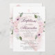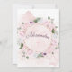 Eine hübsche Rose Blütentaufe. Das Design ist ein rosa Blumenkranz mit einem silberfarbenen Text, der leicht auf Ihre Informationen geändert werden kann. Wählen Sie aus einer Reihe von Papiertypen. Die Rückseite hat ein rosa Blumenmuster und ein Kreuz mit dem eigenen individuelle Name.
