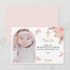 Eine moderne und elegante Taufe danke Ihnen Karte. Weiß mit Blumen, Pampas-Gras und Schmetterlingen dekoriert. Personalisieren und fügen Sie Ihr Foto des Kindes in den Bogen Rahmen, vielen Dank für Ihre Notiz und Name. Zurück: Rosa Hintergrund rot