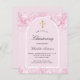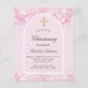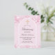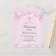 Rosa Hintergrund und Bogen. Mit rosa Imitaten dekoriert, Glitzer Staub. Personalisieren und einen Namen und Zeremonie Details. Elegantes handgeschriebenes Stilskript. Zurück: Rosa Hintergrund rot.