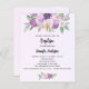 Ein violetter, lavendigerer, wasserfarbener Hintergrund. Die Einrichtung ist mit violetten und lila Blume und Grünpflanzen sowie einem goldenen Kreuz gestaltet. Personalisieren und fügen Sie einen Namen und Empfang Details hinzu. 1 Blatt = 1 Einladung mit Druckkante bis Kante.