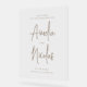 Herzlich willkommen bei Ihrem Event mit diesem individuell gestaltbaren Begrüßungsschild mit wunderschöner handschriftlicher Kalligrafie. Dieses Schild ist ideal für Paare, die klassische, raffinierte Details schätzen, und verleiht jeder Hochzeit, von modernen bis zu traditionellen Festen, eine persönliche Touch. Passen Sie das Zeichen einfach mit Ihren Namen, Ihrem Hochzeitstermin oder einer herzlichen Nachricht an. Dieses kalligraphische Hochzeitszeichen eignet sich ideal für Ihren feierlichen Eingang, den Gästebuchtisch, den Foto-Stand oder den Empfang-Bereich. Dieses Acrylzeichen verleiht jedem Raum seine zeitlose Schönheit. Nach Ihrem großen Tag wird dieses individuell gestaltbare Schild zu einem wertvollen Erinnerungsstück Ihrer Hochzeit und bewahrt die Erinnerungen für die nächsten Jahre. Ob Sie eine schicke Hochzeit in der Stadt oder ein traditionelles Fest veranstalten, dieses individuell anpassbare Acrylzeichen mit handgeschriebener Kalligrafie verleiht der Stadt die perfekte persönliche und elegante Touch.