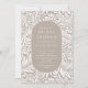 Modernes Blatt- und Blume-Muster mit einem stilvollen ovalen Rahmen, der Ihre Party-Informationen in Taupe und Weiß umrahmt.