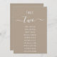 In the upper part, there is the table number written in a handwriting script and the word Table above, in smaller caps (hand letters). Under them, there are the 10 guest names, in similar hand letters. The background is taupe (a light brown), all text is white.