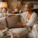 Rustic hearth inspired design in deep taupe features a woven basket texture print with scattered gold spark accents. The grounded neutral palette layers easily with wood tones and linen, ideal for sofas, reading chairs, or bedroom styling in warm, lived-in interiors.