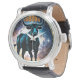 Uhr, Vintage Männeruhr mit schwarzem Lederarmband