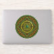 Diese Mandala wurde für das Tierkreiszeichen Taurus entworfen, das einen Smaragdstein in der Mitte darstellt, umgeben von Elementen, die das Schild darstellen, wie das Symbol für das Schild, die Konstellation und das alchemistische Symbol für die Erde, sowie filigrane Weinreben und Weber, die alles in ein solides Bild in Brauntönen, Grüntönen und Golden einwickeln.
